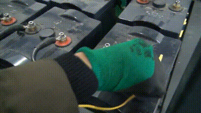 連接組端正負極前使用萬用表驗證組端正負極,然后將放電電纜另一端分別與電池組兩端連接(紅正黑負)。