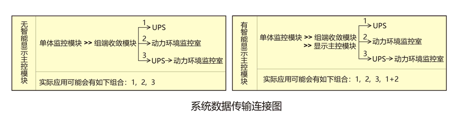 ● 系統(tǒng)數(shù)據(jù)傳輸方式靈活,監(jiān)控數(shù)據(jù)傳送可滿足任何機房各種傳輸、對接需求具體方式如圖: