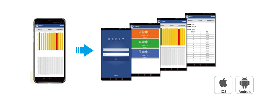 ● 配備專用APP:支持IOS和安卓系統(tǒng),能在APP上查看所有的監(jiān) 控參數(shù)和電池組運行情況